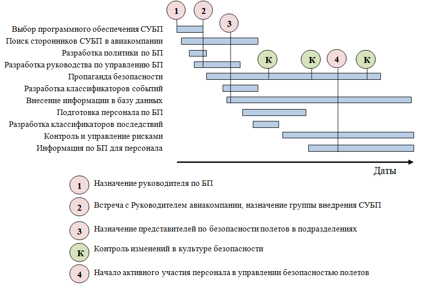 Общий план внедрения СУБП в авиакомпании может выглядеть следующим образом: